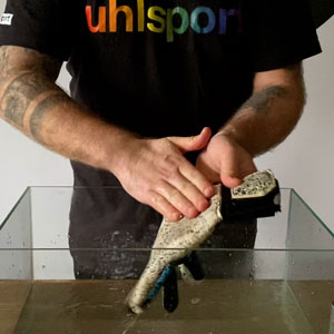 Step 1: Soak Goalkeeper Gloves