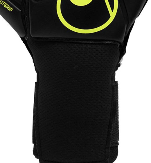 Innovative Verschlusstechnologie mit flügelartigem Aufbau sorgt für eine optimale Fixierung des Handschuhs und gibt dem Keeper maximale Flexibilität sowie Stabilität. Die Enden der Verschlusslaschen, sowie eine zusätzliche Lasche am Bund, erleichtern sowohl das Öffnen und Verschließen als auch das Anziehen des Handschuhs.